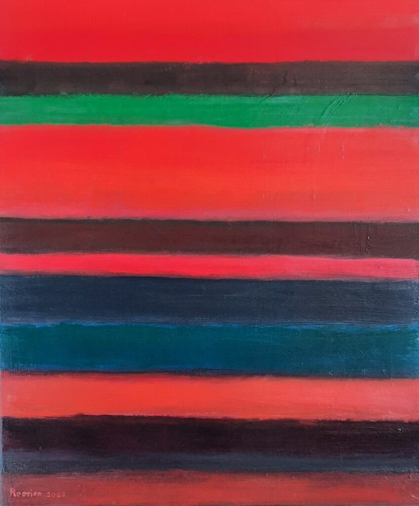 1970, vrouw en paard, monotyp op papier, 50x40cm1976, zonder titel, olieverf op doek, 60x50cm, verkocht 2000, landgoed, olieverf/gemengde techniek op doek, 40x30cm2000, landschap, olieverf/gemengde techniek op doek, 60x80cm, verkocht2000, Giverny, olieverf op doek, 80×80 cm, verkocht2000, Giverny, olieverf op doek, 70x70cm, verkocht2001, Mijn vijver, tweeluik, olieverf op doek, 2x100x50cm, verkocht2001, blauwe irissen, olieverf op doek, 70×70 cm, verkocht2001, gele irissen, olieverf op doek, 70×70 cm, verkocht2001, tulpen, olieverf op doek, 70x70cm, verkocht 2001, tulpen, olieverf op doek, 70x70cm, verkocht2002, klaprozen, olieverf op doek, 70×70 cm, verkocht2002, wat heden stond in bloei, viel gisteren reeds af. Olieverf op doek, 70x70cm 2002, in memoriam, olieverf gemengde techniek, 3x40x20cm2004, vrees, acryl op doek, 60x50cm 2004, Alberto Giacometti, acryl op doek, 60x50cm 2005, klaproos 2022 revisie, olieverf op doek, 70×70 cm, verkocht2005, de lege plaats, olieverf op doek, 60×50 cm, 2005, de overlevende, olieverf op doek, 100×70 cm2005, de ontmoeting, acryl en olieverf op doek, 80×100 cm2005, de tuinen, olieverf op doek, 60×70 cm, verkocht 2006, pats, boem, muziek. Olieverf op doek, 80x120cm, 2006, stilleven, olieverf op doek, 50×60 cm2006, zonder titel,acryl en O.I.inkt op papier, 66x78cm2007, Tere zielen, olieverf op doek, 100×120 cm, verkocht2007, IJsselluchten, olieverf op doek, 100×120 cm2007, De last van het verleden, acryl en O.I. inkt op papier, verkocht2007, op weg, acryl op papier, 43x60cm2007, Twee paarden, olieverf op doek, 80×100 cm, verkocht2007, geborgenheid, olieverf op doek, 60x70cm2008, Lux, olieverf op doek, 60x90cm 2008, wachten op de laatste trein, acryl op papier, 55x40cm, verkocht2008, spiegelingen, olieverf op doek, 90×60 cm2008, De Berkel in blauw, olieverf op doek, 60×80 cm, verkocht2008, De IJssel op een grijze dag, olieverf op doek, 60×70 cm2008, personages, acryl op papier, 46×55 cm, verkocht2008, rechtvaardig en barmhartig, olieverf op papier, verkocht2009, drieluik, krijt op papier, 40×60 cm, verkocht2009, Gloed, olieverf op doek, 55×46 cm2009, Monochromie, olieverf, gemengde techniek op doek, 90×90 cm2009, time is blind, krijt, acryl en inkt op papier, 33 cm2009, Music, olieverf op rond doek, 80 cm, verkocht2009, chromatica, olieverf op rond doek, 80 cm, verkocht2009, chromatica, tweeluik, olieverf op papier op 2×3 panelen, 2x 114×27 cm2010/2025, lacrimosa, gemengde techniek olieverf op doek, 70x60cm2010, cocon, gemengde techniek op doek, 46×33 cm2010, cocon, gemengde techniek op doek, 40×30 cm2010, vaas, gemengde techniek op doek, 35×45 cm2010, coconnen, olieverf op doek, 50×60 cm2010, gevonden schatten, olieverf op paneel, 61×100 cm2010, schatplichtig, olieverf op doek, 60x80cm 2010, zonder titel, olieverf, grafiet op concaaf paneel, 60×70 cm, verkocht2010, zonder titel, acryl en O.I. inkt op papier, 41×41 cm2010, zonder titel, acryl en O.I. inkt op papier, 41×41 cm, verkocht2011, Almen, olieverf op doek, 70×80 cm, verkocht2011, landschap, olieverf op doek, 80x100cm2011, zonder titel, olieverf op doek, 80×100 cm2011, zonder titel, olieverf op doek, 70x70cm, verkocht2011, het park, olieverf op doek, 70x70cm 2011, zonder titel, olieverf op doek, 70x70cm 2012, de worsteling, olieverf op doek, 80×100 cm, verkocht2012, onze merel, olieverf op doek, 100×80 cm2012, zonder titel, oliepastel op papier, 22×18 cm2012, zonder titel, olieverf op doek, 60×90 cm2012, zonder titel, oliepastel op papier, 15×15 cm2013, zonder titel, oliepastel op papier, 28×32 cm2013, zonder titel, oliepastel op papier, 28×32 cm2013, de schilder en zijn muze, olieverf op paneel, 60×60 cm2013, zonder titel, olieverf op doek, 90x60cm2013, zonder titel, olieverf op doek, 100×80 cm2014, het geheim, acryl en O.I. inkt op papier, 30×45 cm2014, vierluik, studie, oliepastel op papier, 4x20x4 cm, verkocht2014, voorjaarsstorm, olieverf op doek, 100×150 cm2014, bloemenweide, olieverf op doek op paneel, 40x80cm2014, zonder titel, olieverf op doek, 60x80cm, verkocht2014, teken I, acryl en O.I. inkt op papier, 40×30 cm2014, teken II, acryl en O.I. inkt op papier, 40×30 cm2014, teken III, acryl en O.I. inkt op papier, 40×30 cm2014, zonder titel, acryl op textielen en watten op papier, 51x36cm2014, zonnebloem I, olieverf op doek, 60x60x4 cm2014, zonnebloem III, olieverf op doek, 60x60x4 cm2014, zonnebloem II, olieverf op doek, 60x180x4cm2015, boomfiguren, gouache en O.I. inkt op papier, 18×26 cm2015, het zwarte licht, olieverf op doek, 80×120 cm2015, schoonheid in verval, olieverf op doek, 80×120 cm2015, flora, olieverf op doek, 80x120x4cm 2016, zonder titel, acryl en O.I. inkt op papier, 40×60 cm2015, zonder titel, olieverf op doek, 70×70 cm verkocht2015, zonder titel, olieverf op doek, 60×40 cm2016, zonder titel, acryl en O.I. inkt op papier, 48×32 cn2016, opstand der horden, acryl op papier, 40×50 cm2015, zonder titel, krijt en inkt op papier, 24×29 cm2016, zonder titel, acryl op papier, 27×19 cm2016, Trois Chorals, acryl op papier, 29×22 cm2016, zonder titel, gemengde techniek op papier, 28×20 cm2016, de schooier, acryl en O.I. inkt op papier, 30×25 cm2016, zonder titel, acryl op papier, 40×50 cm2016, les amants, acryl en O.I. inkt op papier, 25×30 cm, verkocht 2016, op reis naar utopia, acryl op papier, 25×30 cm, verkocht2016, de aankomst, acryl en O.I. inkt op papier, 25×30 cm2016, schaapskudde op Lueneburgerheide, acrylbeschilderde foto, 19×28 cm, verkocht2016, bomen, acryl.beschilderde foto, 19×28 cm, verkocht 2016, Roekie is dood, acryl op papier, 52x63cm excl. lijst (66×75cm)2016, zonder titel, acryl op papier, 46×57 cm2016, paraproteinen, acryl en O.I. inkt op papier, 70×50 cm2016, floralia,m acryl op papier, 63×42 cm2016, zonder titel, acryl en olieverf op papier,40×25 cm2016, zonder titel, acryl en olieverf op papier, 40×25 cm2017, De IJssel, acryl en O.I. inkt op papier, 25x40cm, verkocht2017, De IJssel, acryl en 